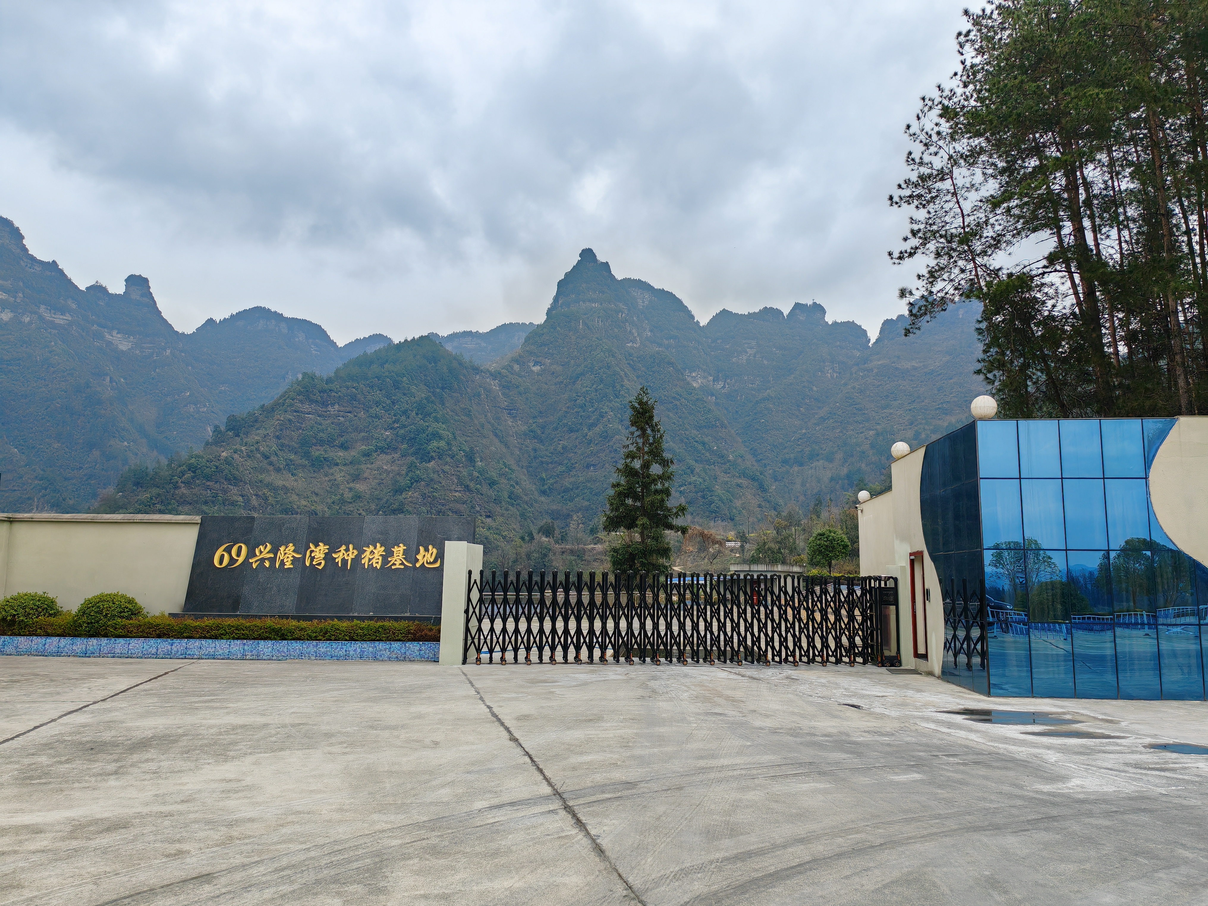 69興隆灣種豬基地位于重慶市黔江區石會鎮青山村興隆灣,占地面積653畝,建筑面積5.9萬平方米,建設投資2.71億元。由1個3000頭(一條獨立生產線)基礎母豬的種豬繁殖區、1個6000頭(兩條組合生產線)基礎母豬的種豬繁殖區、1個后備豬培育區、1個日處理600立方米污水的環保處理區和配套管理區組成。