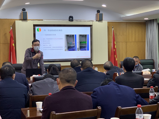 此次培訓(xùn)會由區(qū)畜牧中心生產(chǎn)區(qū)站陳勇站長和重慶69國家生豬核心育種場場長、國家生豬產(chǎn)業(yè)技術(shù)體系重慶試驗(yàn)站站長蒲強(qiáng)主講,會上就豬常溫精液安全生產(chǎn)、母豬發(fā)情鑒定、生豬人工授精技術(shù)、常溫精液保存規(guī)范等生豬人工授精技術(shù)要點(diǎn)進(jìn)行了講授。