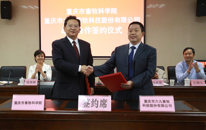 2016年10月28日,在重慶市畜牧科學院會議室,重慶市畜牧科學院院長劉作華和重慶市六九畜牧科技股份有公司總經理羅云共同簽訂了《共建重慶生豬產業(yè)技術研究院有限公司戰(zhàn)略合作協議》。