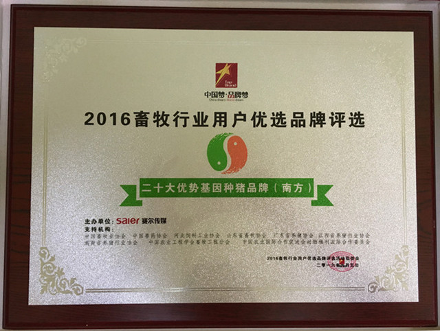 在該次會議中的2016畜牧行業用戶優評品牌評選活動中,重慶69獲得了“二十大優勢基因種豬品牌(南方)“。