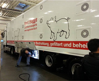 16日,考察團經德國邊境,進入丹麥,考察了位于丹麥邊境上的大型卡車自動清洗站。官方人員現場檢查、清洗進入國境內的運豬車,采取嚴格消毒準入制度。這種嚴格的生物安全處理措施非常值得國內同行借鑒學習。