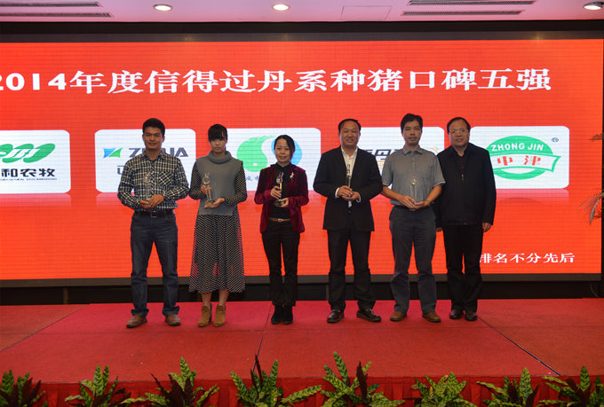 2014年度信得過丹系種豬企業(yè)五強(左3為重慶69代表)