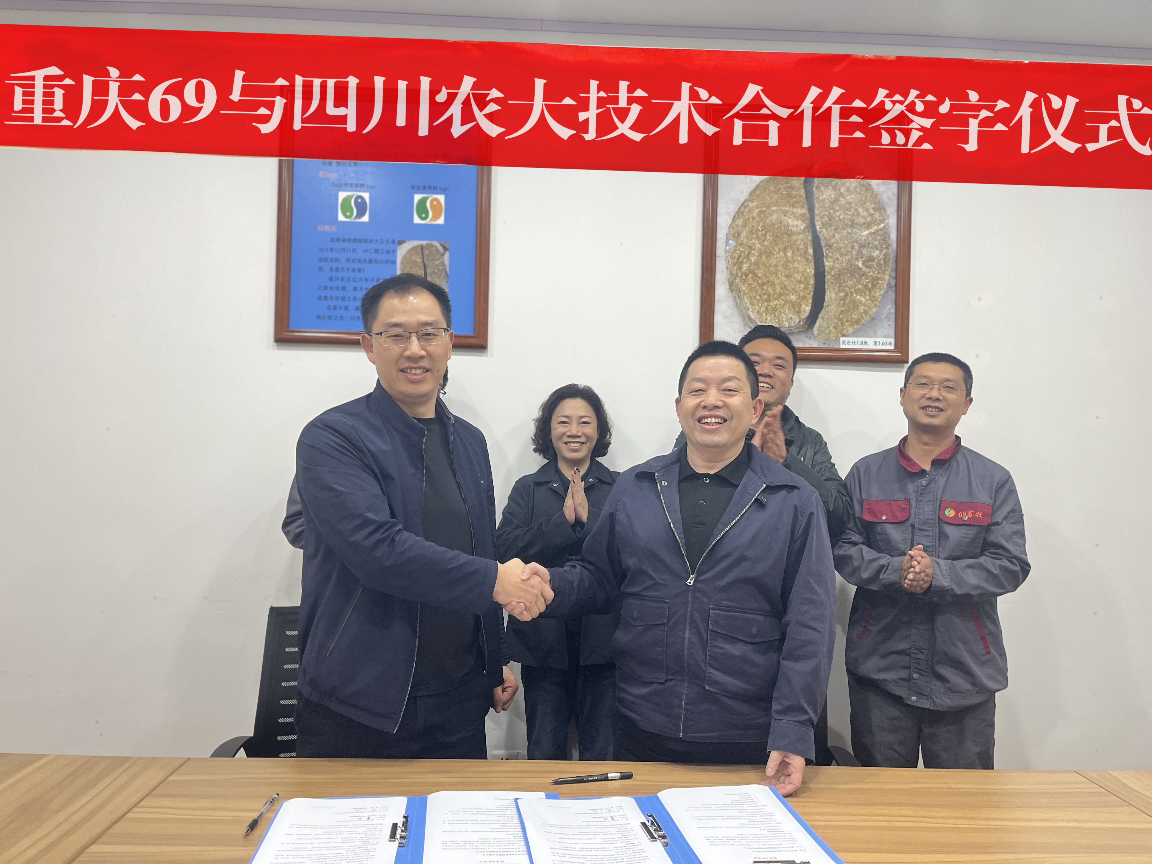 2月14日四川農(nóng)業(yè)大學(xué)動(dòng)物醫(yī)學(xué)院豬病研究中心與重慶69公司達(dá)成友好合作,川農(nóng)豬病研究中心教授黃小波、公司總經(jīng)理羅云出席簽約儀式。