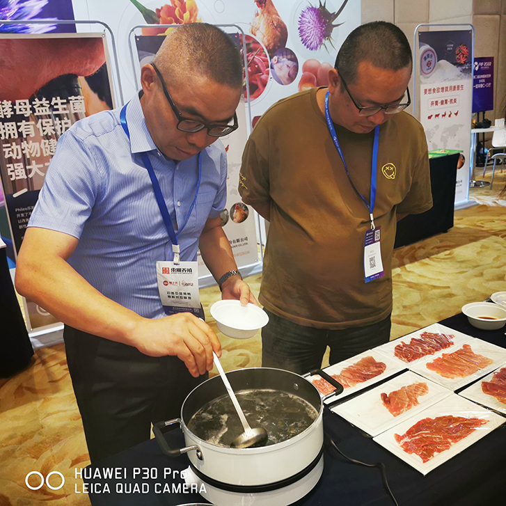 重慶69無抗豬肉“鮮、香、嫩、滑”,做法簡單,清水涮豬肉,還原豬肉最原始的豬肉品質。8月8日,會議首日重慶69無抗豬肉一經展出,就吸引了各界人士的高度關注!許多品鑒人士品嘗重慶69無抗豬肉后長時間停留在展臺,認真品鑒無抗豬肉,詳細咨詢重慶69無抗生豬養殖情況,對無抗豬肉依依不舍。8月9日,諸多品鑒者更是邀請自己單位同事、朋友到重慶69展臺品鑒無抗豬肉。更多的各界人士更是慕名前來品鑒。有甚者,多次反復來到展臺品嘗無抗豬肉,一10歲小女孩一日三次來到展臺品嘗無抗豬肉,國家飼料工程技術中心副主任白玉華三次來到展臺品鑒無抗豬肉,我國著名動物營養專家李德發院士兩天五次來到展臺關心、品鑒、指導無抗豬肉。