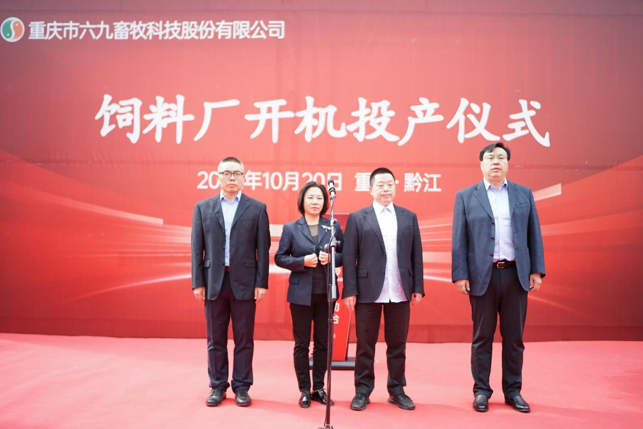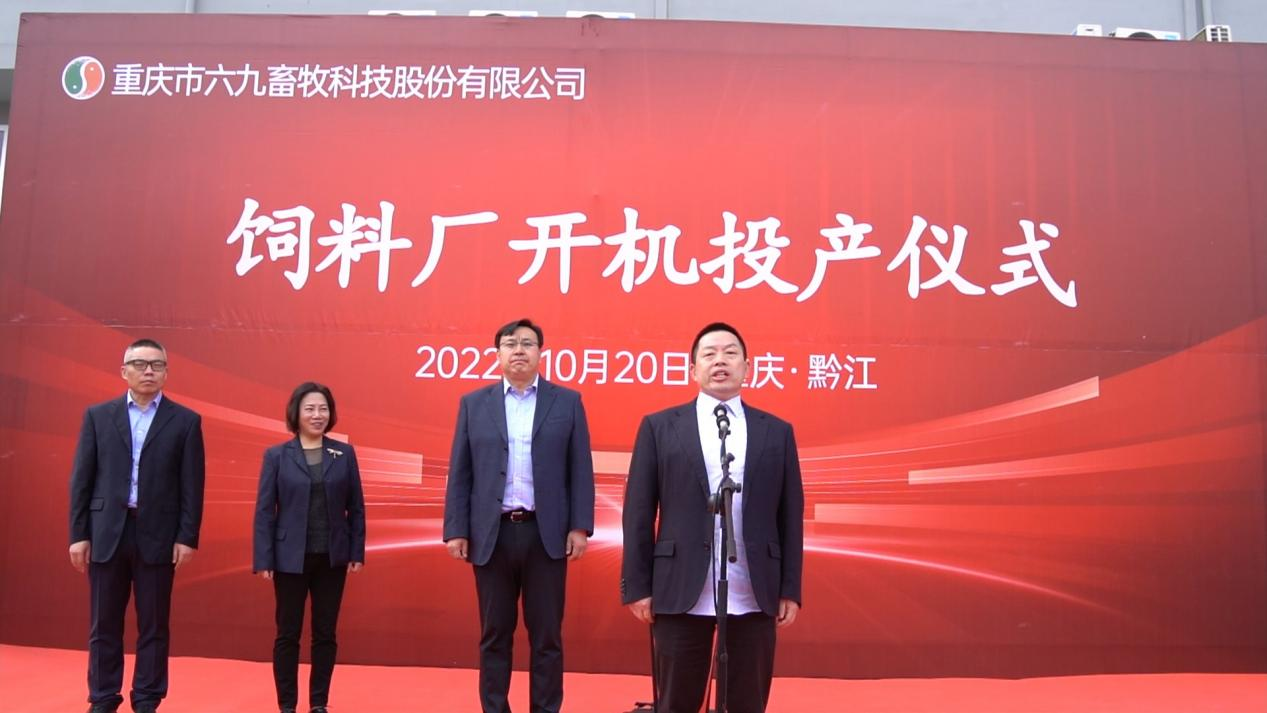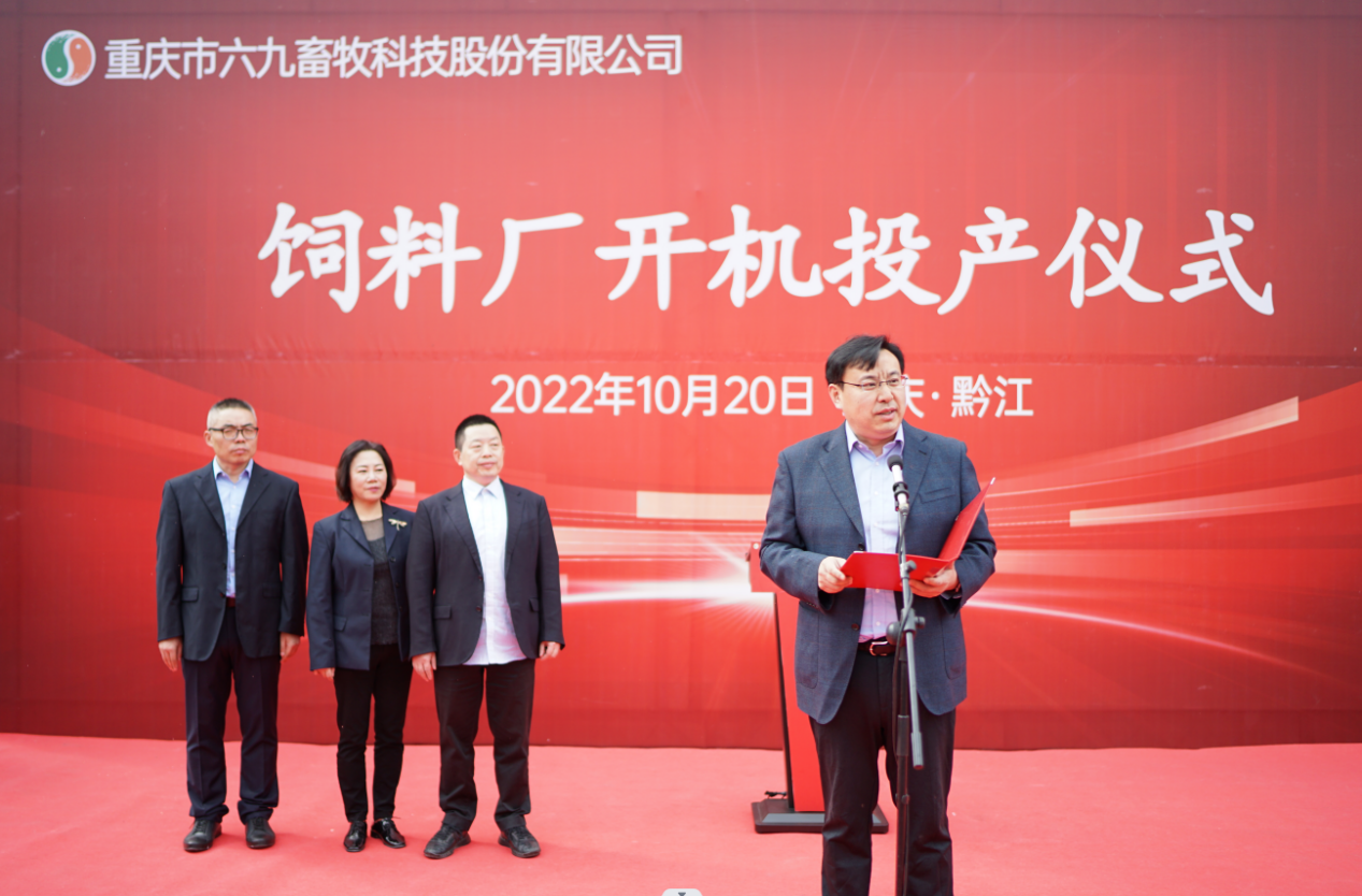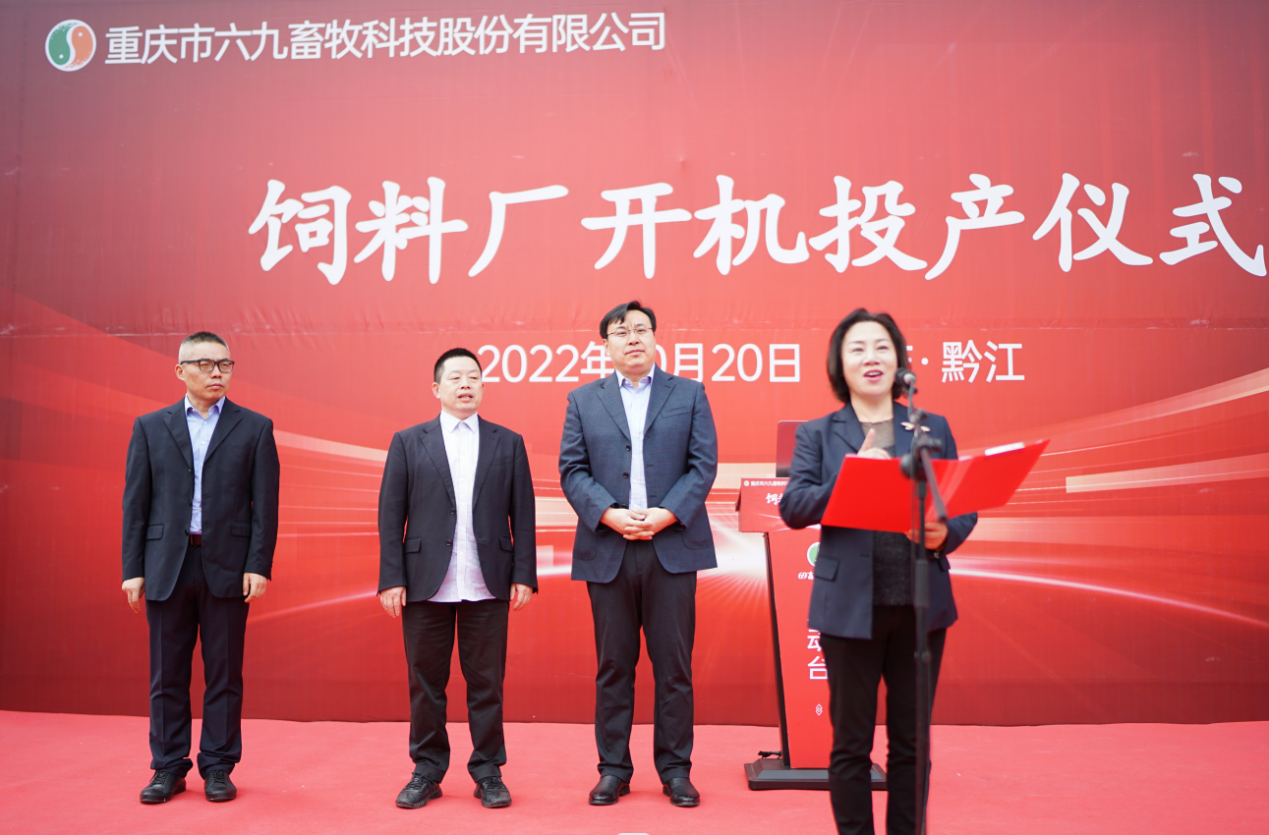 69畜牧董事長王藜發表講話。董事長王藜感激感恩各方善緣對69的支持、幫助。董事長說今天69畜牧飼料廠的投產,離不開區委區政府的正確領導,離不開中牧集團的鼎力支持,更離不開69人堅韌不拔的奮斗。接下來,69畜牧將牢固樹立成本意識、品質意識和營銷意識,結合現代化科學技術產出安全優質的高品質飼料,為區域經濟的協調發展和黔江的“四城建設”貢獻力量。
