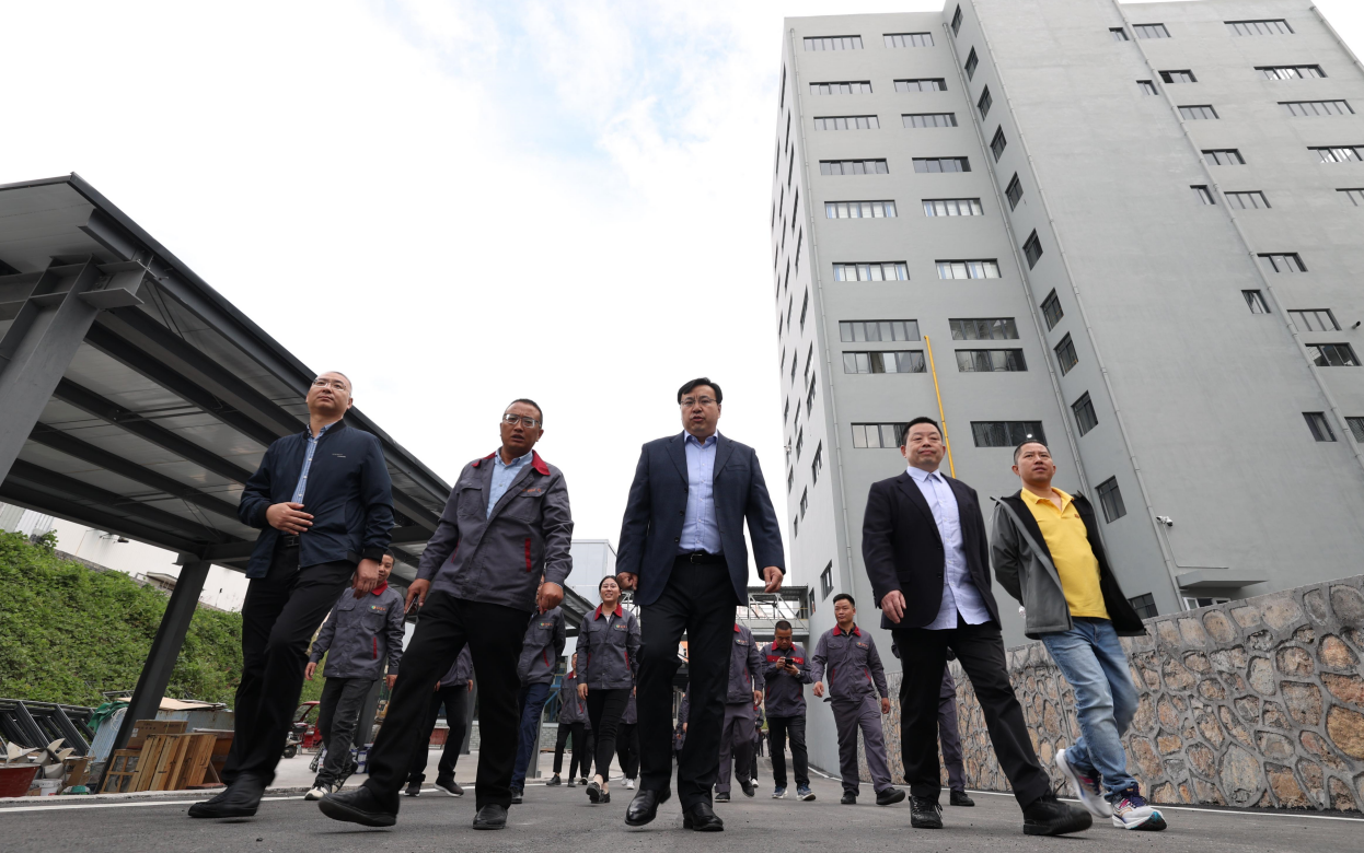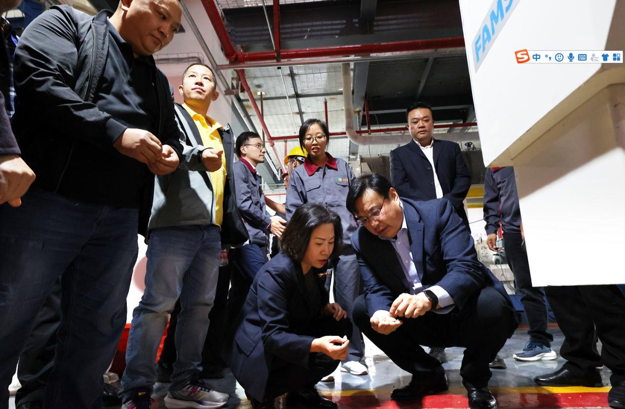 開機投產儀式后,參加儀式的領導一行實地參觀廠區生產線運作情況,并見證69畜牧飼料廠首車飼料出廠。