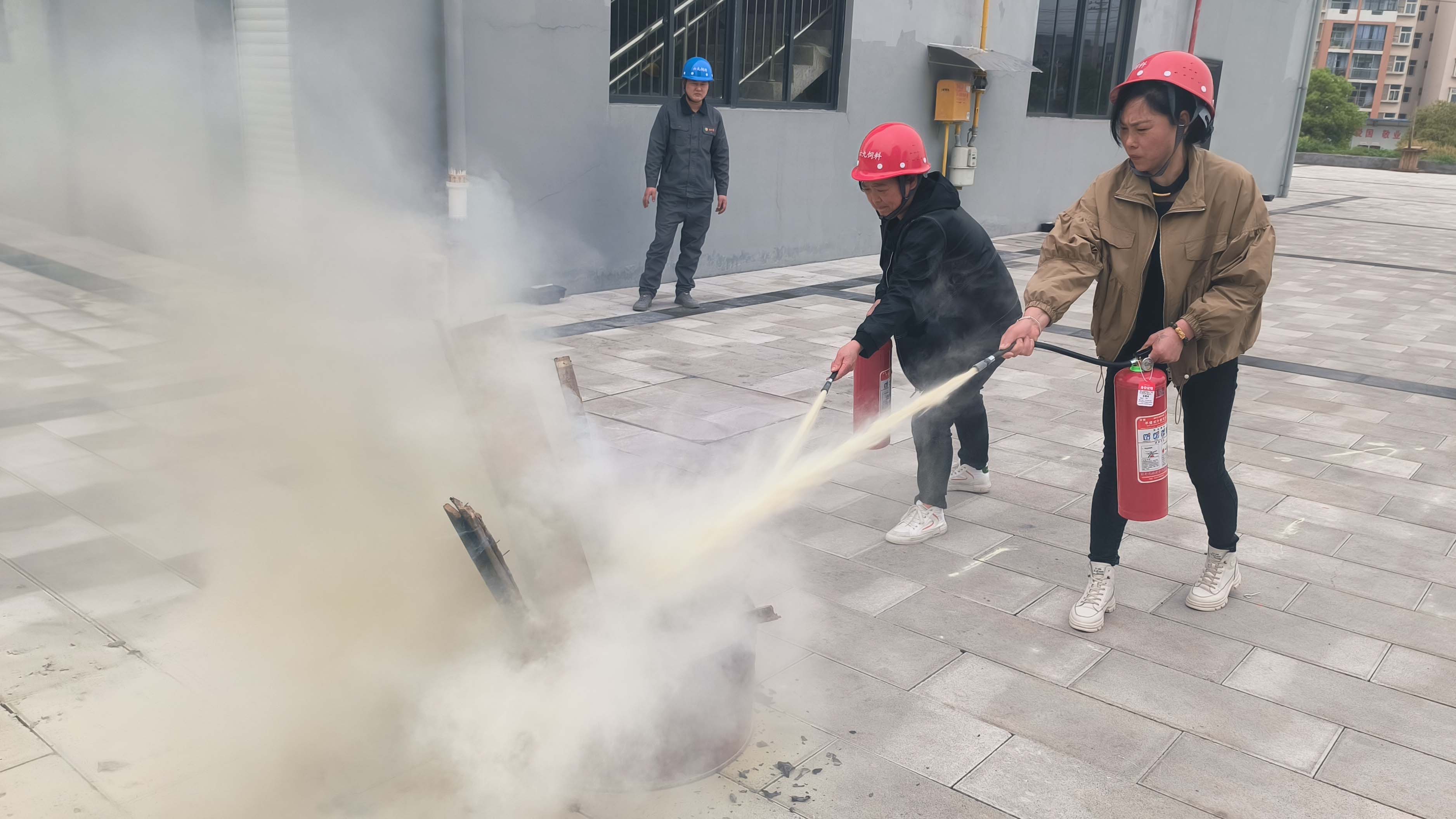 為了將所學知識付諸實踐,本次培訓中還進行了員工滅火器使用方法實訓演練。過程中強調了干粉滅火器的使用技巧和注意事項,各部門人員均輪流操作,增強了員工消防應急處置能力。
