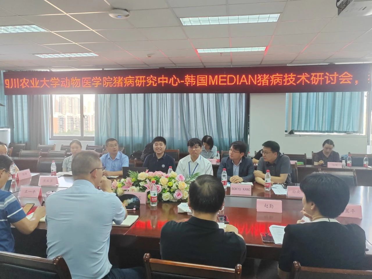 會議首先由四川農(nóng)業(yè)大學(xué)動物醫(yī)學(xué)院文翼平副教授與韓國邁迪安公司商務(wù)部和市場部總監(jiān)BokyuKang相繼對豬病研究中心研究進展,邁迪安公司的發(fā)展歷程和國際合作做了介紹。