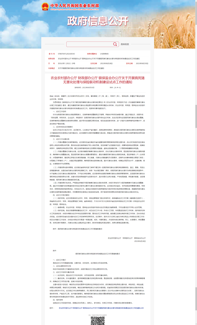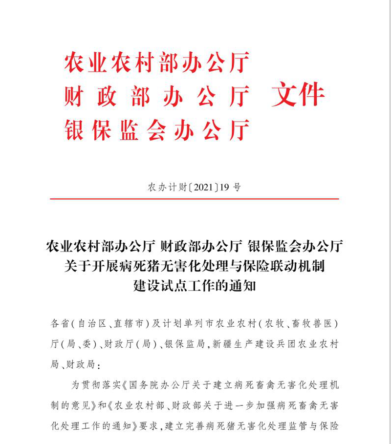 保險惠農政策雙贏的長效機制,農業農村部、財政部、銀保監會決定組織開展病死豬無害化處理